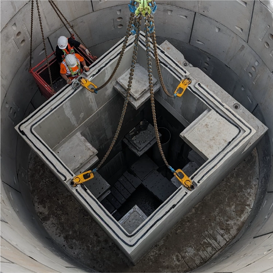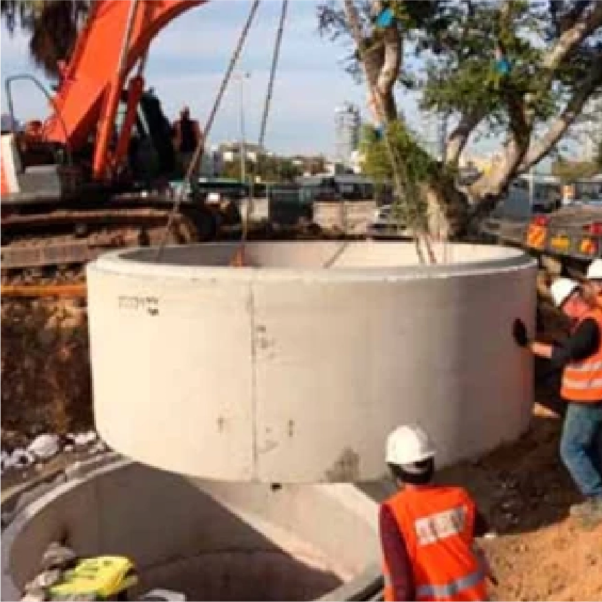 מקטעים טרומיים מבטון מזוין, עמידים בלחצים תת-קרקעיים ומותאמים לתנאי סביבה קשים. אידיאליים לגישה לתשתיות תת-קרקעיות, אוורור וניקוז, עם אטימה מתקדמת לשימוש ארוך טווח